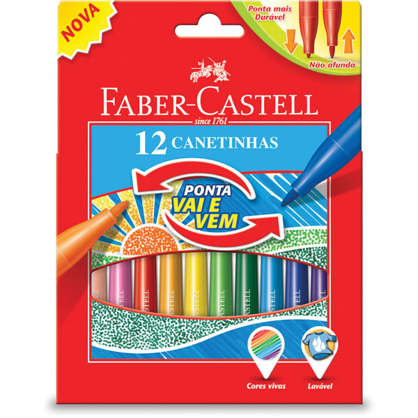 • Canetinha Hidrográfica 12 Cores Ponta Vai e Vem Faber Castell R$ 20,50
